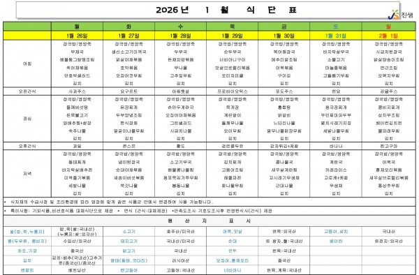 1월 4주차 식단표