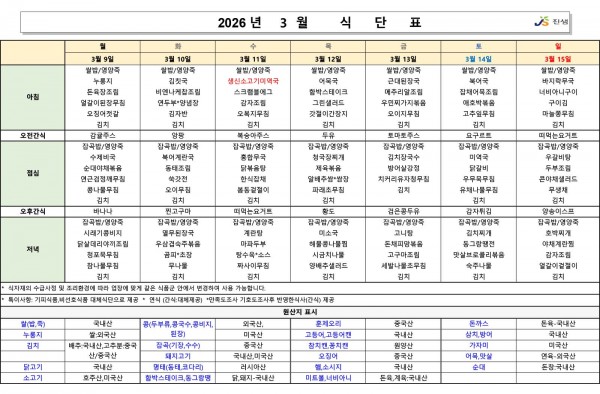 3월 2주차 식단표