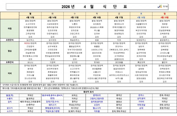 4월 2주차 식단표